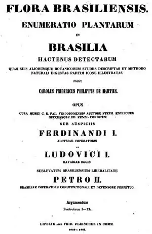 - Flora brasiliensis, 1840-1906, tamanho folio, 130 fascículos, reorganizados em 15 vols. com 40 partes. Inclui o tratamento de famílias de plantas vasculares e musgos. BHL.