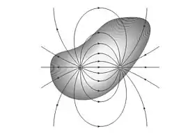 Por exemplo, o fluxo produzido por um dipolo elétrico, através de uma superfície fechada que envolva as duas cargas, é nulo porque o número de linhas de campo que entram e saem é o mesmo.