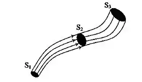 Em qualquer superfície delimitada pelo tubo de fluxo, o fluxo terá o mesmo valor. Por exemplo, o fluxo através das superfícies e tem o mesmo valor.