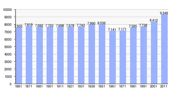 | Variação demográfica do município entre 1861 e 2011[3] |