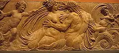 A contribuição pessoal de Goujon foi um movimento giratório decorativo nas esculturas, com cortinas onduladas e rolos ondulados feitos de conchas e caudas de criaturas marinhas.[5]