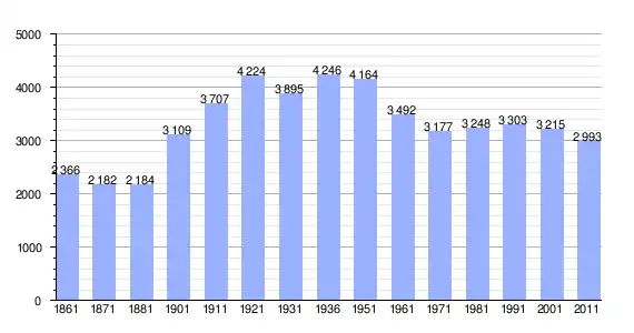 | Variação demográfica do município entre 1861 e 2011[3] |