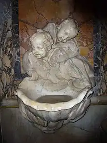 Uma fonte de água benta é um recipiente contendo água benta que geralmente é colocado perto da entrada de uma igreja. Muitas vezes é colocado na base de um crucifixo ou representação religiosa. É usado na Igreja Católica, Igrejas Anglicanas e algumas igrejas Luteranas para fazer o Sinal da Cruz usando a água benta na entrada da igreja.[1] A água benta é abençoada por um padre ou diácono, e muitos cristãos acreditam que seja um lembrete das promessas batismais.[2]