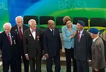 Uma pensão aos veteranos que suprisse a sobrevivência veio apenas em 1988, com a Constituinte de 1988, quando todos os veteranos brasileiros sobreviventes da Segunda Guerra passaram a ter direito legal a uma compensação especial, equivalente à pensão deixada por um segundo-tenente do exército.[65] Tal benefício não apenas se estendia também aos veteranos que não haviam estado nas campanhas da Itália ou do Atlântico, como não os diferenciava entre si ou daqueles que haviam servido no território continental brasileiro durante a guerra. O debate que o antecedeu, somado a ressentimentos acumulados em quatro décadas, também serviu para aumentar a rixa já existente entre veteranos que tiveram participação ativa nas campanhas citadas e aqueles que serviram na retaguarda.[66]
