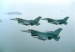 Caças F-16 americanos, baseados na Coreia do Sul, das forças aéreas do Pacífico.