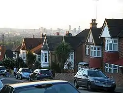 Vista de Forest Hill. Os arranha-céus da Cidade de Londres podem ser vistos à distância.