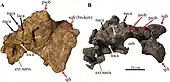 Um crânio parcial.[16] | Um anquilossaurídeo que tem ornamentação craniana semelhante a Akainacephalus, um ankylossauriano da Formação Kaiparowits.[16][17] | ||