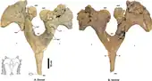 Fragmentos parietal, escamoso parcial, jugal, epijugal, quadratojugal parcial, sacro parcial e vertebral.[24] | Um ceratopsídeo chasmossaurino que foi hipotetizado para formar uma série anagenética com várias outras espécies de chasmossauros, incluindo Navajoceratops.[24] | ||