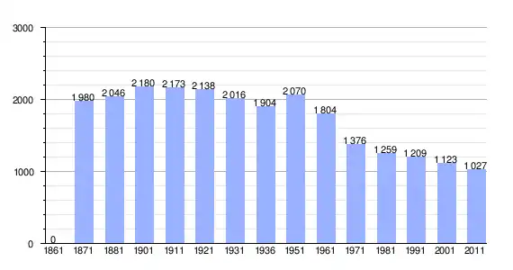 | Variação demográfica do município entre 1861 e 2011[3] |