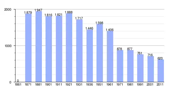 | Variação demográfica do município entre 1861 e 2011[3] |