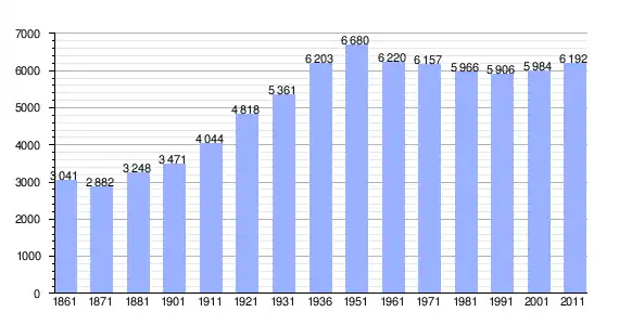 | Variação demográfica do município entre 1861 e 2011[3] |