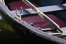 Posiciona-se geralmente no bordo do barco, mas nas embarcações de competição a remo muito estreitas, tipo Skiff, fixa-se numa peça triangular fora da embarcação.