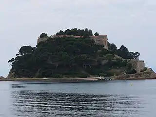 Existia uma fortaleza na ilhota rochosa desde a chegada dos Ligures, em 118 a.C..