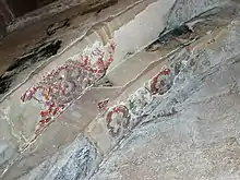 Apesar de seu caráter predominantemente militar, é um dos poucos locais onde a arte cruzada (em forma de afrescos) foi preservada. Em 1935, 1955 e 1978, afrescos medievais foram descobertos dentro dela depois que o gesso e lavagem branca posteriores caíram. Os afrescos foram pintados no interior e exterior da capela-mor e a capela do lado de fora da entrada principal, que já não sobrevive. Escrevendo em 1982, o historiador Jaroslav Folda observou que na época havia pouca investigação sobre afrescos cruzados que fornecessem uma comparação para os restos fragmentários encontrados na fortaleza. Aqueles na capela foram pintados na alvenaria da reconstrução de 1170 a 1202. Mofo, fumaça e umidade tornaram difícil preservar os afrescos. A natureza fragmentária dos afrescos vermelhos e azuis dentro da capela significa que são difíceis de avaliar. Aquele no exterior da capela representava a Apresentação de Jesus no Templo.[59]