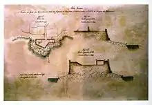 - "8° - Forte das Caninas. Está retificado de novo, tem cinco canhoneiras e quatro peças com os seus reparos, boa; precisa mais huma com o seu reparo e para se guarnecer precisa cinco artilheiros e vinte auxiliares."[5]