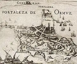 Ele e povoação capitularam ante um ataque naval das forças persas, sob o comando do Xá Abas I da Pérsia, em 22 de setembro de 1614, passando a povoação a denominar-se Bandar-e'Abbās, ou "Porto de 'Abbās".