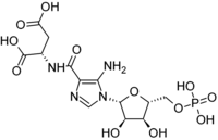 | Outros nomes | SAICAR; 2-[(5-Amino-1-{3,4-dihydroxy-5-[(phosphonooxy)methyl]oxolan-2-yl}imidazol-4-yl)formamido]butanedioic acid; N-{[5-Amino-1-(5-O-phosphono-β-D-ribofuranosyl)-1H-imidazol-4-yl]carbonyl}-L-aspartic acid |