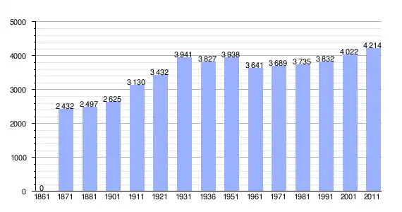 | Variação demográfica do município entre 1861 e 2011[3] |