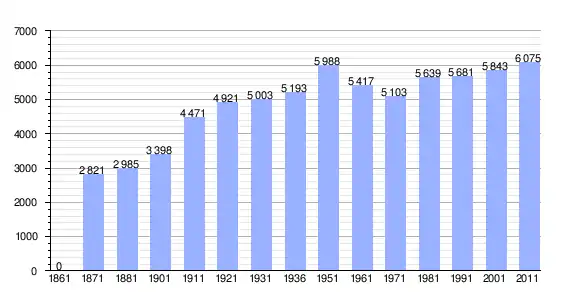 | Variação demográfica do município entre 1861 e 2011[3] |