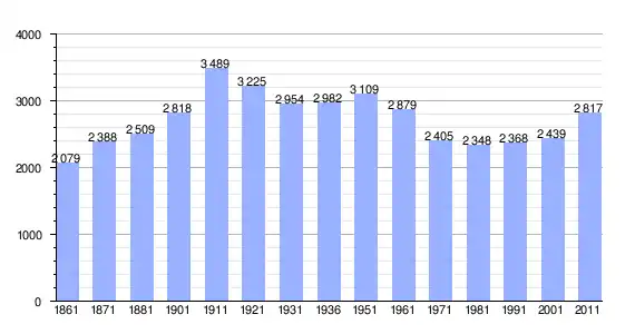 | Variação demográfica do município entre 1861 e 2011[3] |