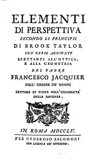 - Elementi di perspectiva secondo I principi di Taylor (8 vo, Rome, 1745);