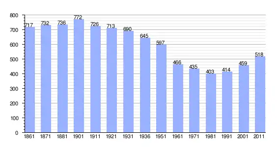 | Variação demográfica do município entre 1861 e 2011[3] |