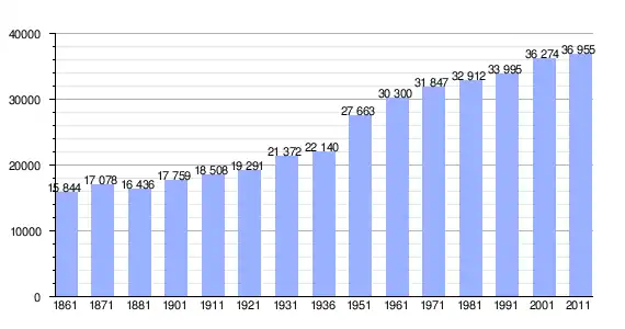 | Variação demográfica do município entre 1861 e 2011[3] |