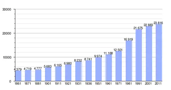 | Variação demográfica do município entre 1861 e 2011[3] |