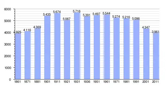 | Variação demográfica do município entre 1861 e 2011[3] |