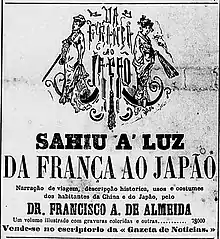 - Dr. Francisco Antonio de Almeida (janeiro de 1879), Da França ao Japão, Rio de Janeiro, OCLC 1020876163, OL 6327358M, Wikidata Q99930394