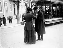 Ramos da Costa em Lisboa, em 1917, dando para o Peditório da Flor, em apoio às vítimas da Primeira Guerra.