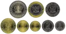 | Moedas | 1, 5, 10, 25, 50, 100, 200, 500 francos |