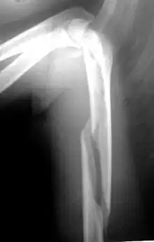 Fratura de úmero se refere a ruptura do úmero, o maior osso do braço. As fraturas proximais são próximas ao ombro (25% dos casos), mediais na diáfise (60% dos casos) e as distais ocorrem próximo ao cotovelo (15% dos casos). Essa classificação pode ser subdividida, com base na extensão da fratura e nas partes específicas do úmero. [1]