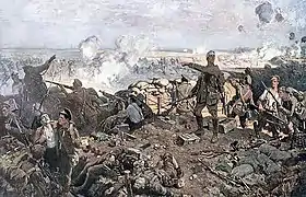 | Ataque francês (carga), usando baioneta. | Mapa da Frente Ocidental e a corrida para o mar, 1914.[24] |