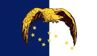 ![]() Bandeira da FLA, uma adaptação da primeira bandeira da autonomia. Note-se a simbologia da proteção das estrelas pelo milhafre. | |