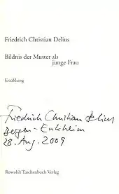 - Karin Graf (ed.): Friedrich Christian Delius. Munique 1990. 65 pág. ISBN 3-89129-067-5