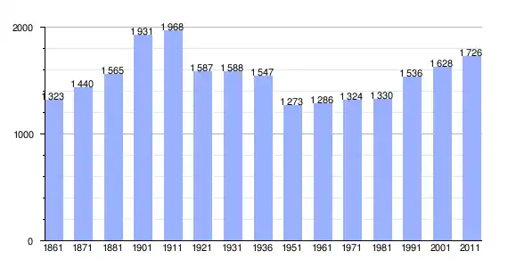 | Variação demográfica do município entre 1861 e 2011[3] |