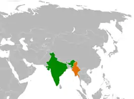 A fronteira entre a Índia e Mianmar se estende por 1463 km a oeste de Mianmar (Birmânia) separando este país das províncias de Arunachal Pradesh, Nagaland, Manipur e Mizoram, no extremo leste da Índia.