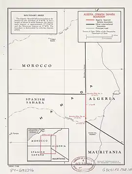 A fronteira entre a Argélia e o Saara Ocidental parte da tríplice fronteira com Marrocos ao norte até a tríplice fronteira com a Mauritânia ao sul.[4][5] Consiste em uma linha reta norte-sul relativamente curta que atravessa o deserto do Saara, conectando as fronteiras marroquinas e mauritanas.