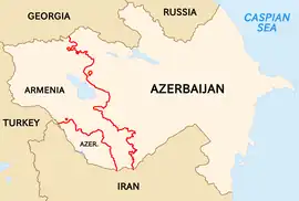 A fronteira entre Armênia e Azerbaijão é a fronteira internacional que separa a Armênia do Azerbaijão.[1] O enclave de Naquichevão faz fronteira com a Armênia ao norte e ao leste. Os locais habitados mais setentrionais da fronteira armênio-azerbaijana, são Kəmərli no lado azeri e Berdavan no lado armênio. Os locais mais habitados no sul são Ganza e Agarak, respectivamente. As estradas europeias E002 e E117 cruzam a fronteira.[2]