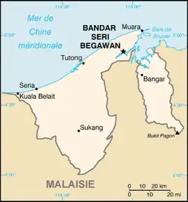 A fronteira entre Brunei e Malásia consiste em uma fronteira terrestre de 266 quilômetros e extensões substanciais de fronteiras marítimas que se estendem da costa dos dois países até a borda da plataforma continental do Mar da China Meridional. O extremo norte desta fronteira está localizado na desembocadura do Sungai Bangau, baseado na coordenada estabelecida pela ordem Sarawak (definição de limites) no Conselho de 1958.[1] Em 2005, Brunei protegeu-se contra a imigração proveniente de seu vizinho erguendo o muro de Brunei / Limbang.[2][3]