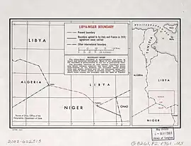A Itália invadiu o território líbio, tomando o mesmo do Império Otomano em 1911, passando a colonizá-lo em 1934. Na Segunda Grande Guerra, expulsos os italianos, o país é dividido entre França e Reino Unido. A independência ocorre em 1951. A região do Níger é ocupada pela França em 1897, torna-se colônia francesa em 1922 e tem sua independência em 1960. Esses acontecimentos definiram a fronteira.