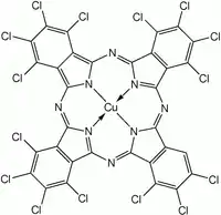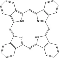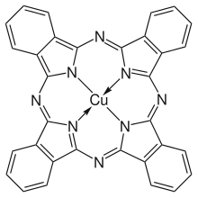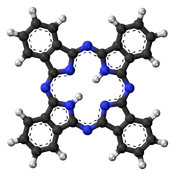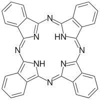 Ftalocianina é um composto macrocíclico aromático intensamente colorido de azul a verde que é amplamente usado em coloração.[3][4][5] Ftalocianinas formam compostos de coordenação com a maioria dos compostos da tabela periódica. Estes complexos são também intensamente coloridos e também são utilizados como corantes ou pigmentos. É um material fotossensível utilizado na fabricação de discos graváveis como CD-R, CD-RW, DVD-R ou DVD-RW.[6][7]
