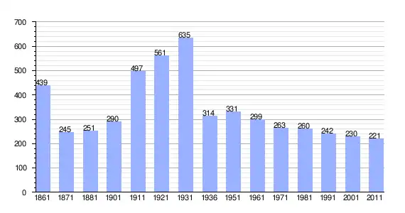 | Variação demográfica do município entre 1861 e 2011[3] |