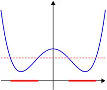 | Quasiconvexa | [2] | Uma função quasiconvexa que não é convexa ![]() Uma função quasilinear é tanto quasiconvexa quanto quasicôncava. |
