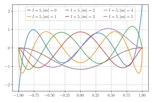 onde os números complexos λ e μ são denominados, respectivamente, grau e ordem das funções de Legendre associadas. As funções de Legendre são as funções de Legendre associadas de ordem μ=0.