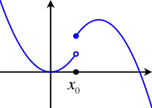 A função representada é um exemplo de uma função que é completamente contínua nos subdomínios dos seus trechos, mas que não é contínua no domínio inteiro, contendo um salto, ou descontinuidade, em .