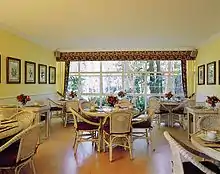 O salão e chá da loja é um, agradável e charmoso ambiente, que serve como ponto de encontro. O espaço disponibiliza mesas, cadeiras, serviços e três (3) tipos de refeições, cafe da manhã, brunch e chá da tarde.[7] Já o cardápio é composto por diferentes tipo de salgado, como por exemplo, pães, empadas e quicher; também oferece variadas opções de doces como bolos e tortas.