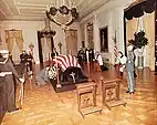 O corpo do presidente Kennedy permaneceu em repouso na Sala Leste por 24 horas,[2] assistido por uma guarda de honra incluindo tropas do 3.º Regimento de Infantaria e das Forças Especiais do Exército (Boinas Verdes).[40][41] As tropas das Forças Especiais foram trazidas às pressas de Fort Bragg, na Carolina do Norte, a pedido do procurador-geral Robert F. Kennedy, que estava ciente do interesse particular de seu irmão por elas.[40]
