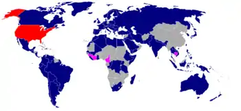 Desde o funeral do rei Eduardo VII da Grã-Bretanha, em 1910, nunca tinha havido uma reunião tão grande de presidentes, primeiros-ministros e membros da realeza num funeral de Estado.[94][138][136] Ao todo, 220 dignitários estrangeiros de 92 países, cinco agências internacionais e o papado compareceram ao funeral.[7][139] Os dignitários incluíram 19 chefes de Estado e de governo e membros de famílias reais.[116] Esta foi a maior reunião de estadistas estrangeiros na história dos Estados Unidos.[140]